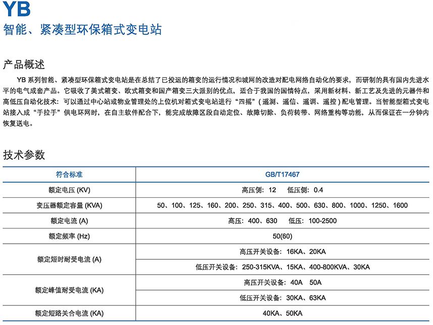 YB智能、緊湊型環(huán)保式變電站