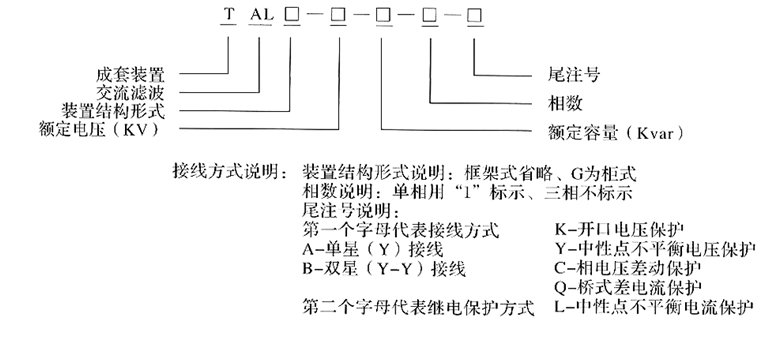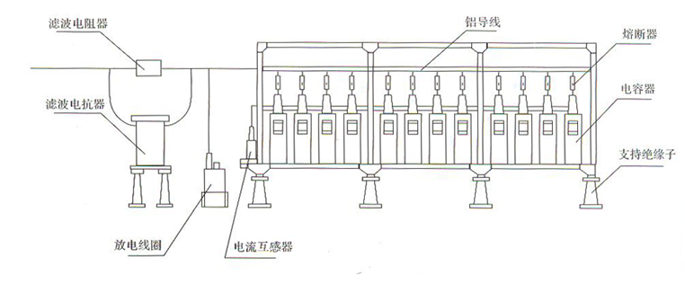 本裝置由濾波電容器組、空芯電抗器、開(kāi)關(guān)(隔離開(kāi)關(guān)、接地開(kāi)關(guān)、斷路器等)、避雷器、熔斷器、電流互感器、放電線圈、電阻器及絕緣子、框架等組成。(裝置中根據(jù)用戶要求電器元件有所增減,均符合相應(yīng)的標(biāo)準(zhǔn))